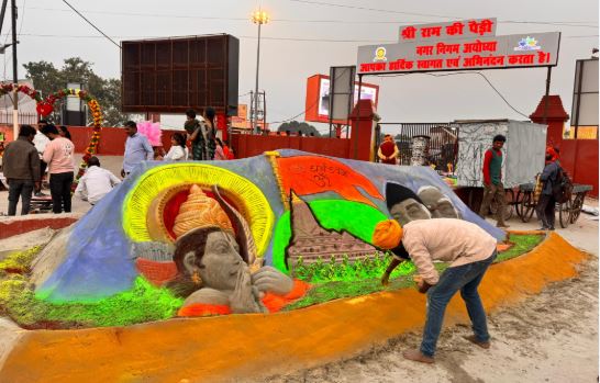 बलिया के सैंड आर्टिस्ट ने अयोध्या में बनाई कलाकृति, जमकर हो रही है तारीफ